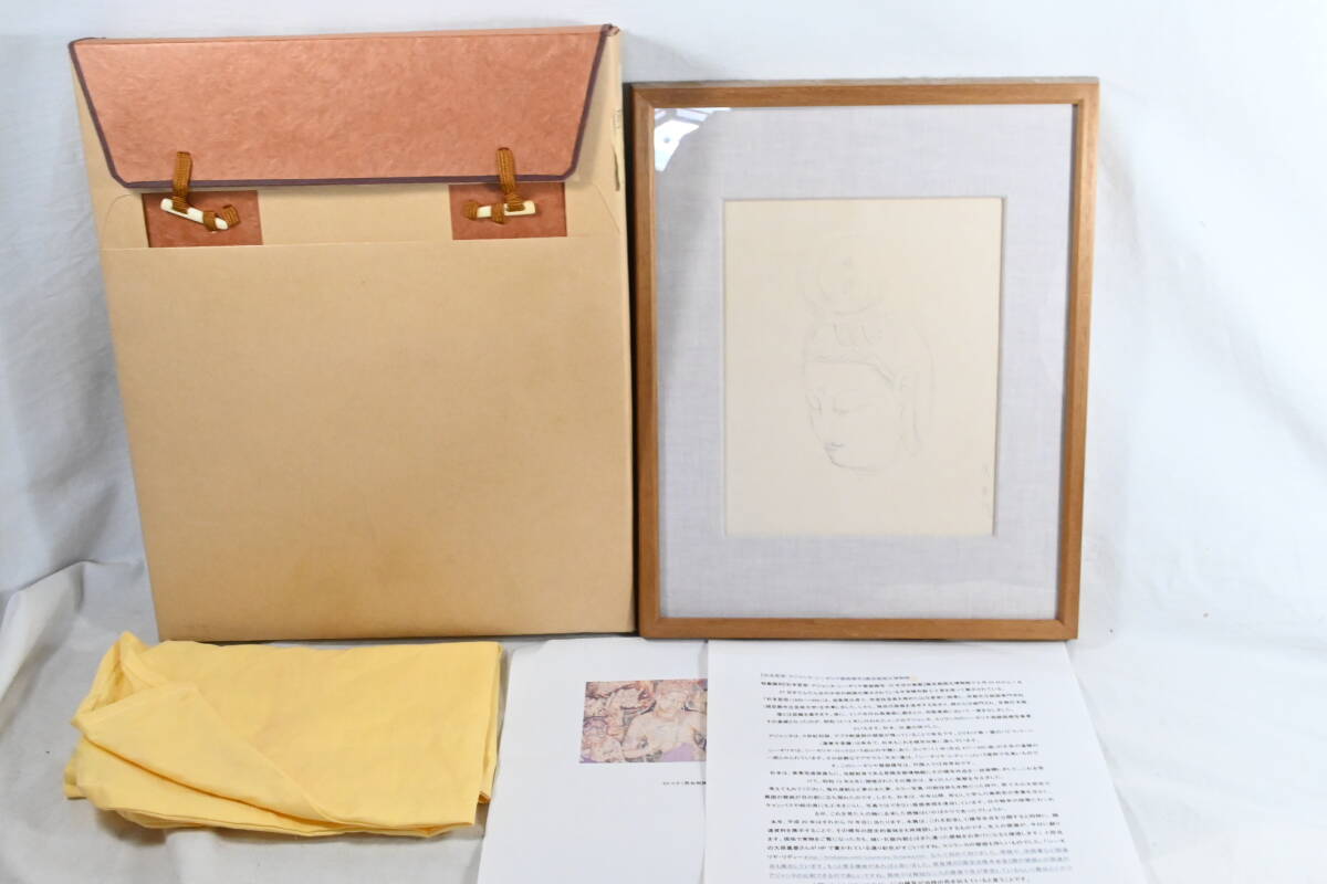 - 真作保証 杉本哲郎 肉筆 1948年 スケッチ 菩薩頭部 約22×17.5cm 額装 杉本一郎 鑑定シール付き 仏画 ,N