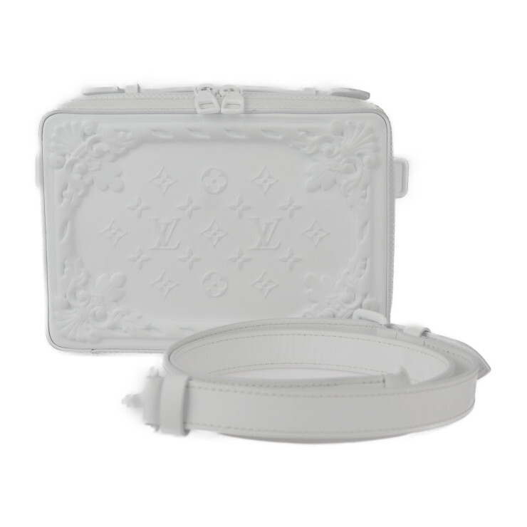 > 美品 ルイ ヴィトン ハンドル ソフトトランク LVオーナメント ショルダーバッグ M21833 レザー 白 2WA【本物保証】