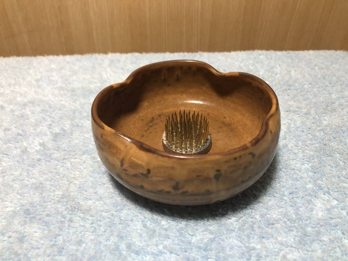 - 【送料無料】未使用 九谷焼 九谷光仙窯 九器光仙 金沢野町 剣山豆丸 生け花花器 いけばな 華道 陶芸 レトロ ヴィンテージ 個人宅保管品