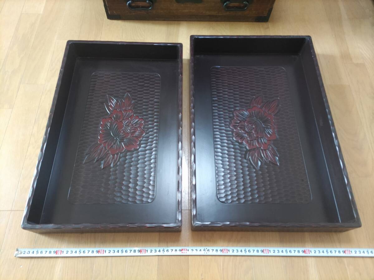 - ■送料無料!■まとめて■鎌倉彫■お盆■トレー■着物・呉服用行李■展示■販売促進・デイスプレイ■保管・収納■2点セット!