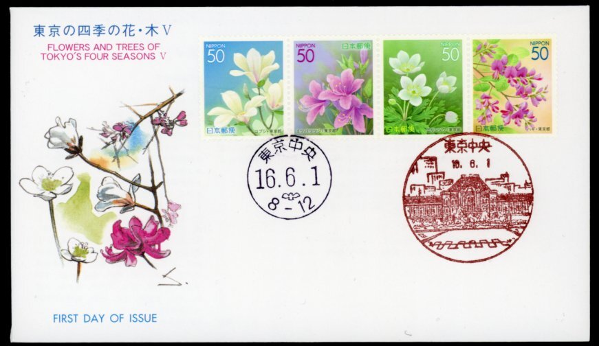 - 0483 【FDC】ふるさと 東京の四季の花・木5[東京中央/16.6.1/郵便文化振興協会]