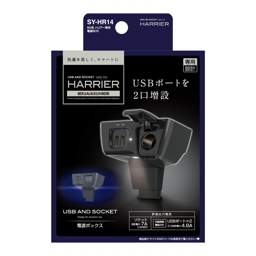 > YAC SY-HR14 80系 ハリアー専用 電源BOX 増設ソケット内装にピッタリフィット USBポート出力合計4.8A SYHR14
