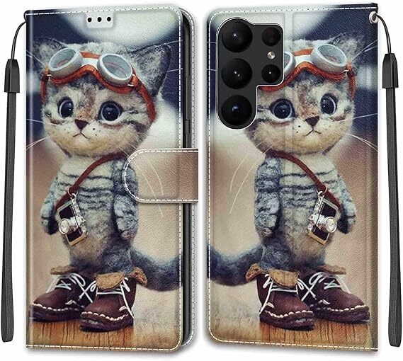 - Galaxy S23 Ultra ケース 手帳型 対応 Samsung ギャラクシー S23 ウルトラ/SC-52D / SCG20 用 カバー スマホケース マグネット式 (猫)