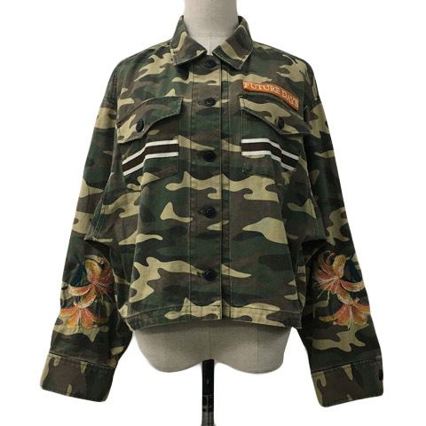 - マウジー ジャケット ブルゾン ミリタリー スタンダード 迷彩 カモフラ 刺繍 プリント ロゴ 長袖 F 緑 茶 グリーン ブラウン レディース