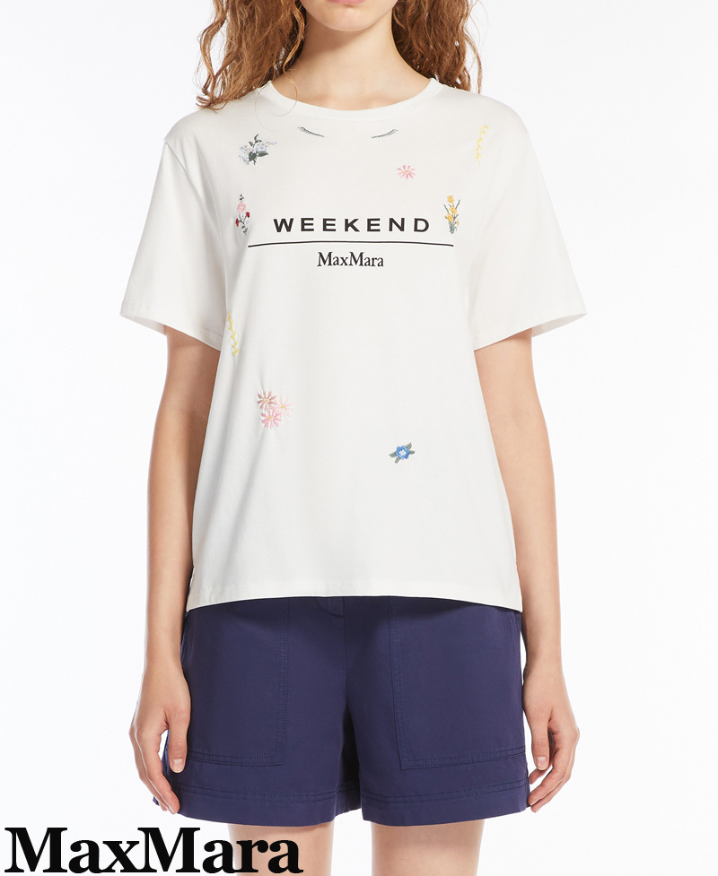 - 新品71%OFF マックスマーラ Max Mara 刺繍デザイン ロゴTシャツ ホワイト XSサイズ 【送料無料】