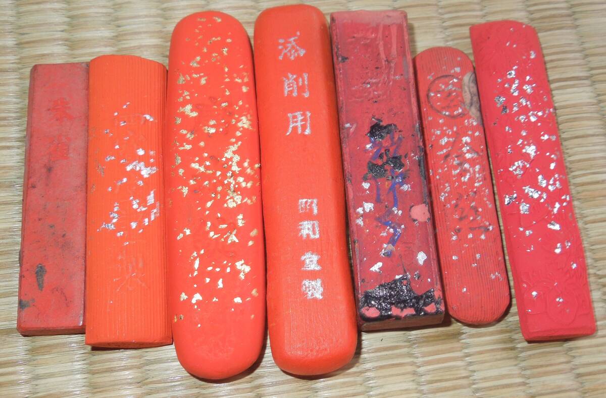 - 書道 墨 古墨 朱墨 7点 総重量:約188g