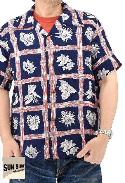 > レーヨンアロハシャツ「ISLAND PLANTS」◆SUN SURF ネイビー XXLサイズ SS39419 サンサーフ ハワイアン 日本製 東洋エンタープライズ
