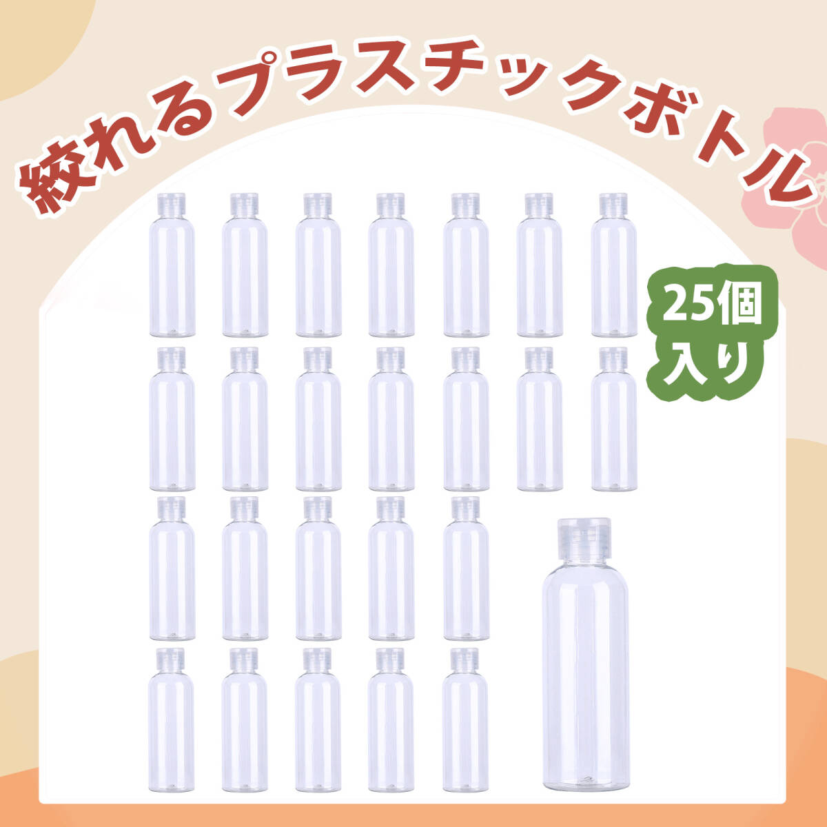 - 【25個入り】60ml クリアボトル プラスチックボトル トラベル ミニ ボトル プラスチック キャップ 液体 化粧品 保存;J6150;