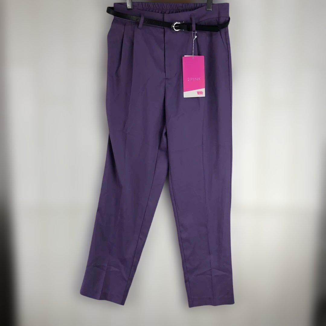 - 未使用品 タグ付き 2PINK 紫色 スラックス L ベルト付き