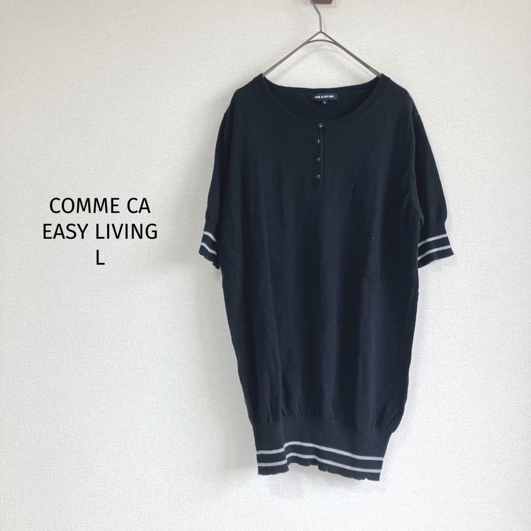 - COMME CA EASY LIVING サマーニット五分袖 ヘンリーネックL