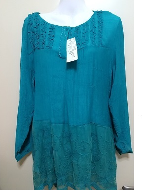 - ●新品可愛い胸元ステッチビーズ・レースデザインチュニックwpMLフリーサイズ