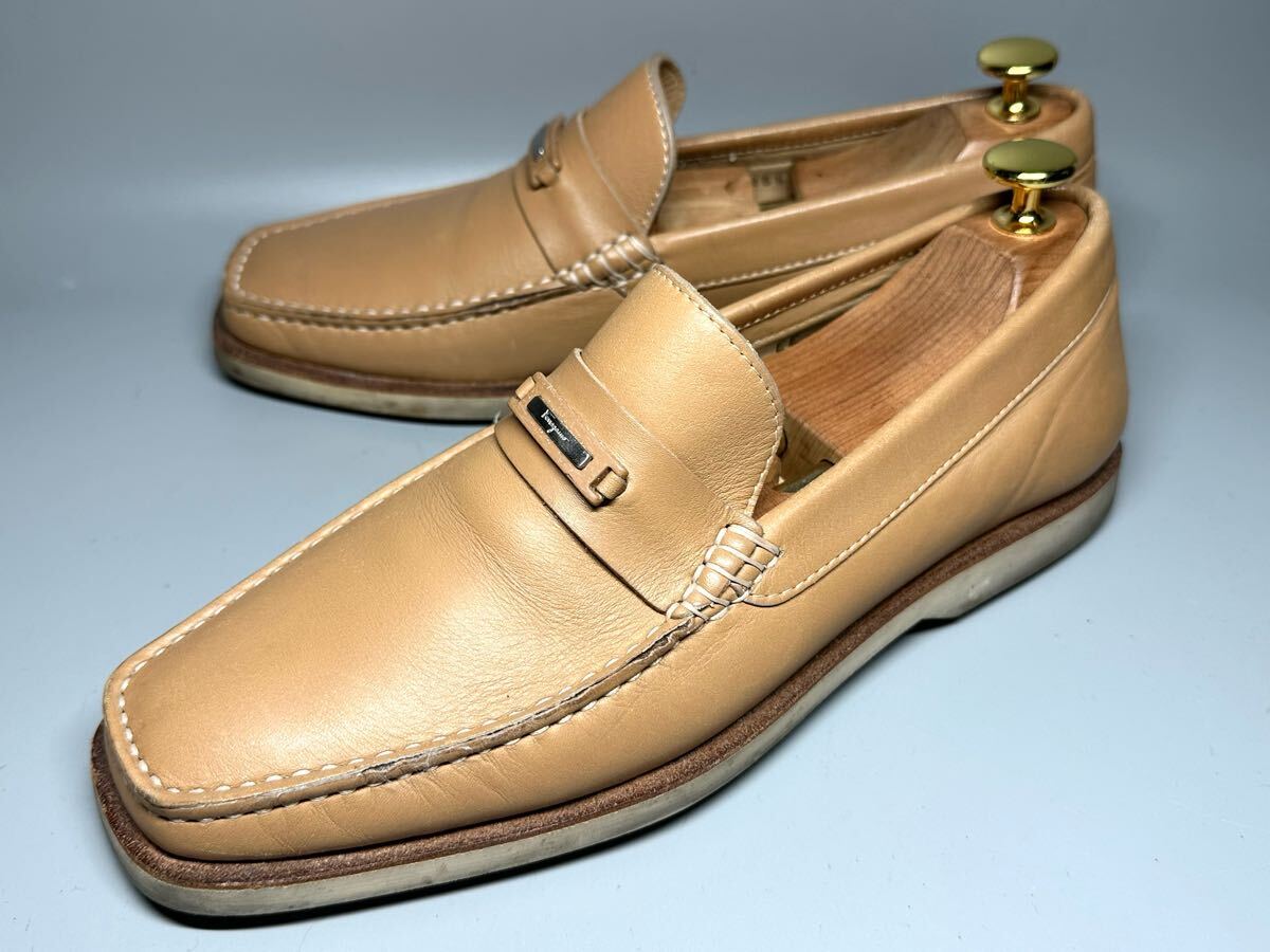 > 【即決】Salvatore Ferragamoフェラガモ ガンチーニ メンズ 6.5 25cm程度 52552 ビットローファー ベージュ 革靴 くつ ビジネス レザー