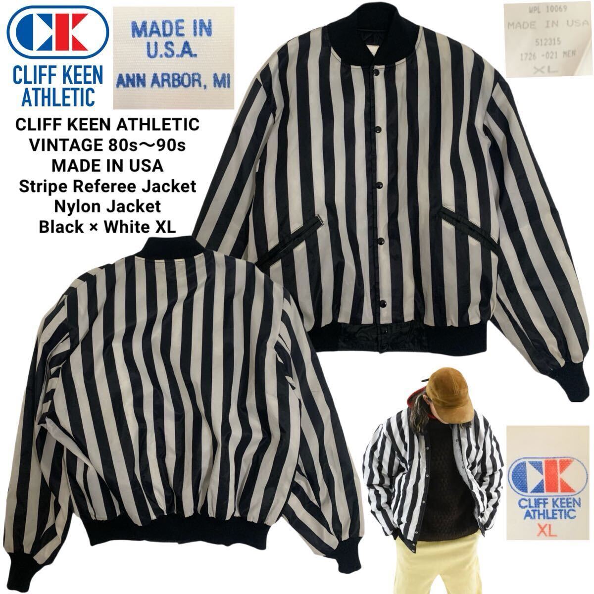 > VINTAGE ヴィンテージ CLIFF KEEN ATHLETIC クリフキーン MADE IN USA USA製 ストライプ柄 レフェリージャケット ブルゾン XL アーカイブ