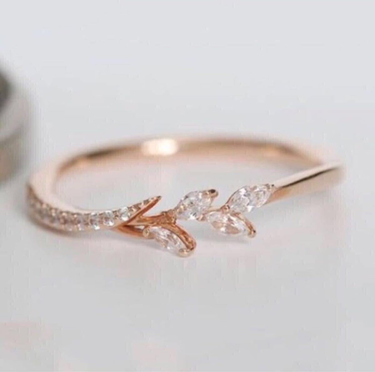 - 新品 13.5号 AAACZ ダイヤモンド リーフリング ピンクゴールド ダイヤモンドリング 花 ピンク プレゼント ローズゴールド 可愛い 送料無料