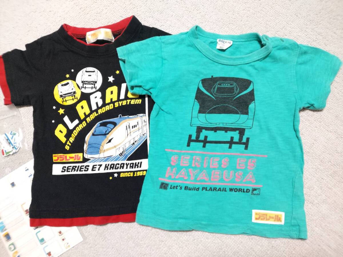 - USED☆プラレール半袖Tシャツ 90 & 95サイズ 2枚セット BREEZE 新幹線 E5 はやぶさ & E7 かがやき おまけシール付き グリーン & 黒