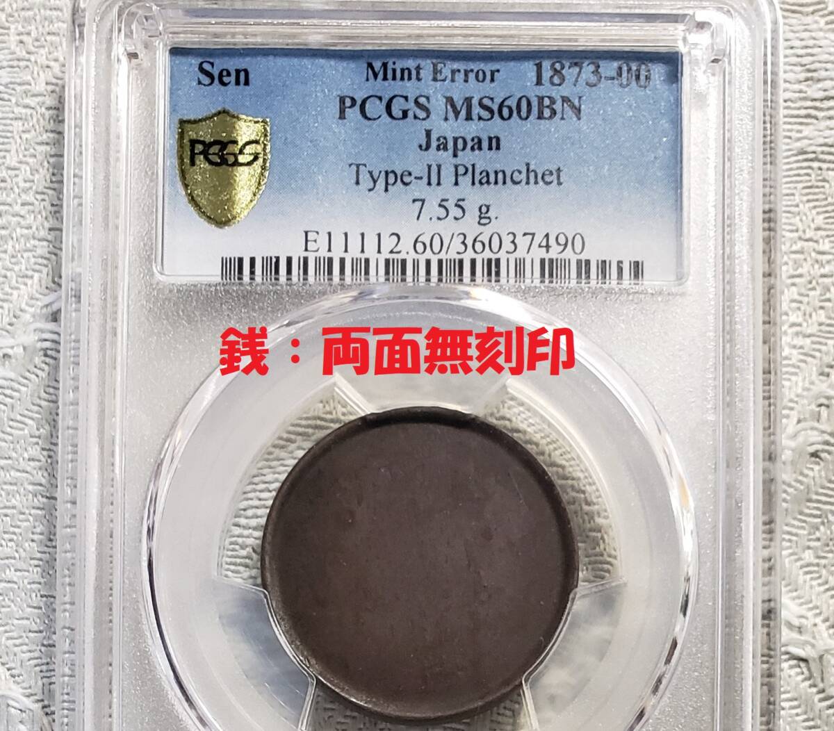 > 【大珍品】◆『PCGS MS60BN』●銭 両面無刻印 1873-(明治6年~) 造幣局エラー エラーコイン◆検)福耳 影打エラー 円銀 貿易銀 穴ズレ