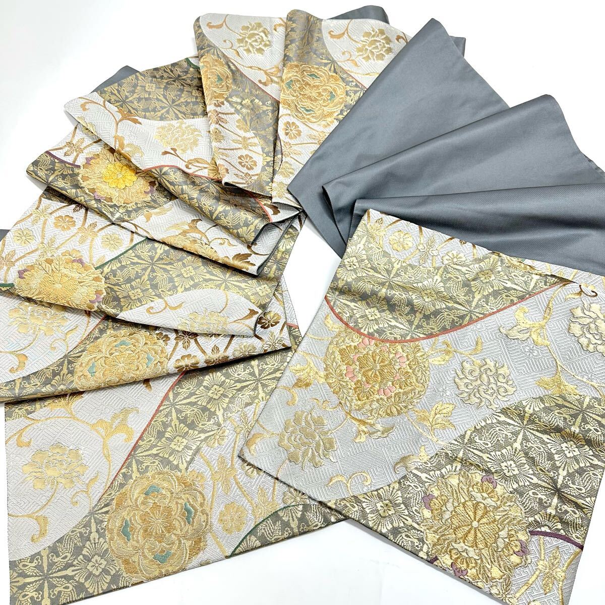 - 【七福】c566 逸品 高級品 正絹 袋帯 六通 聚楽謹製 じゅらく黄金繭 金糸 金彩 刺繍 豪華