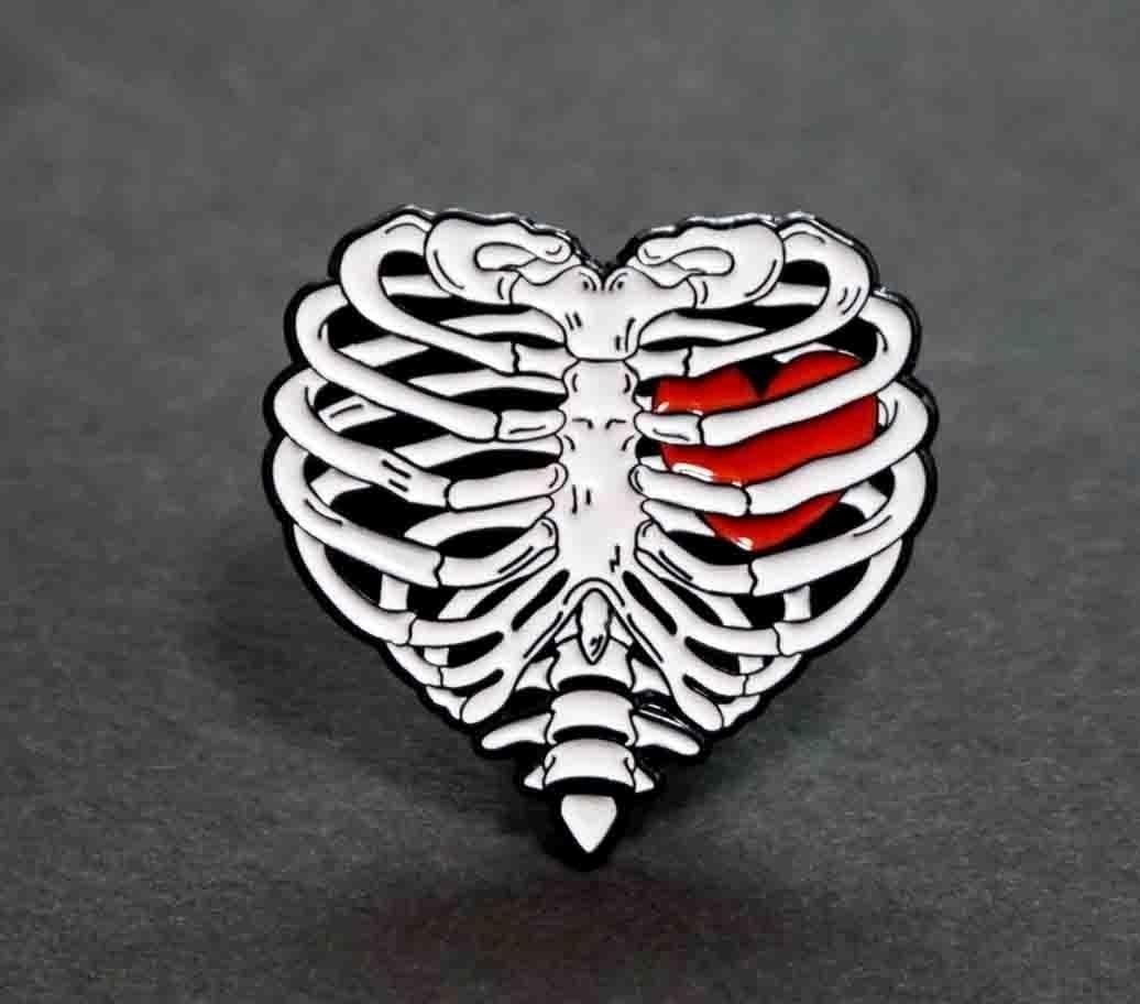 > 《正面ハート肋骨赤心臓》◎髑髏心臓/heart 『ハート』■新品スカル.ハート ロマンチストskull & heartピンバッジ■おしゃれ ファッション