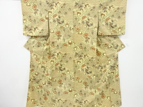 商品詳細 衿は広衿です。掛衿上部に染めムラが有ります。状態は大変良いです。着用可能です。採寸・検品:川本、泉 撮影:堤 時代:現代(1989 - ) 状態:非常によい 素材:化繊 技法: 寸法(cm) 身丈 150.5 身丈 (出し) 裄 61 裄 (出し) 袖丈 47 袖丈 (出し) 後幅 29 前幅 22 つま下 74 注意事項 ご購入の際の注意事項 ・デジタルカメラやご使用のモニターの特性により色が忠実に再現できない場合があります。 ・商品は仕入れ時のそのままの状態で発送し、箱などの付属品も含め、商品内容は全て写真にお撮りしております。 ・樟脳やアンティーク特有の匂いがある場合がございます。 匂いに関しては、商品コメントには記載しておりませんので、ご理解の上ご購入の検討をお願い致します。 ・当店すべての出品物は古美術・アンティーク・中古品ですので、ご説明しきれない小キズ・ニュウ・スレや、使用によるへこみ、あたり、また変色などの欠点がございます。 古美術・アンティーク・中古品であることをご理解の上、欠点も含めてお楽しみいただける方の入札をお願い致します。 ・十分に気を付けてはおりますが、商品管理時や出荷時に破損・紛失等が発生したことで商品をお届けすることが難しくなった場合は、ただちにご連絡のうえ、商品価格と送料を早急にご返金させて頂きます。 ご注文品について ・タイミングによっては実店舗や系列店舗等で先に売切れてしまっている場合がございます。 その際はご返金を以てキャンセルの対応とさせて頂きますのでご了承くださいませ。