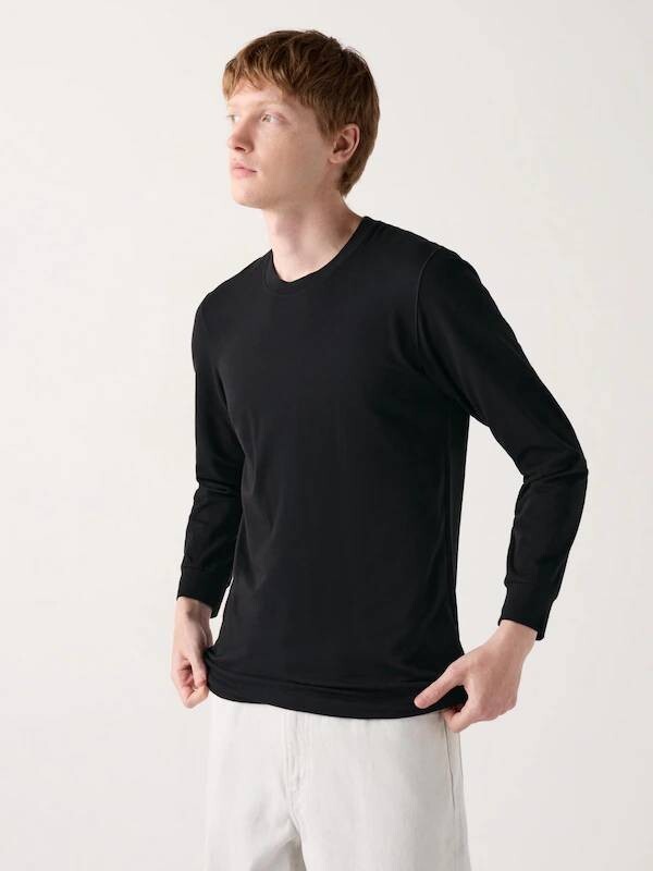 - ユニクロ メンズ 極暖ヒートテックコットンクルーネックT ブラック Mサイズ 2点 469980