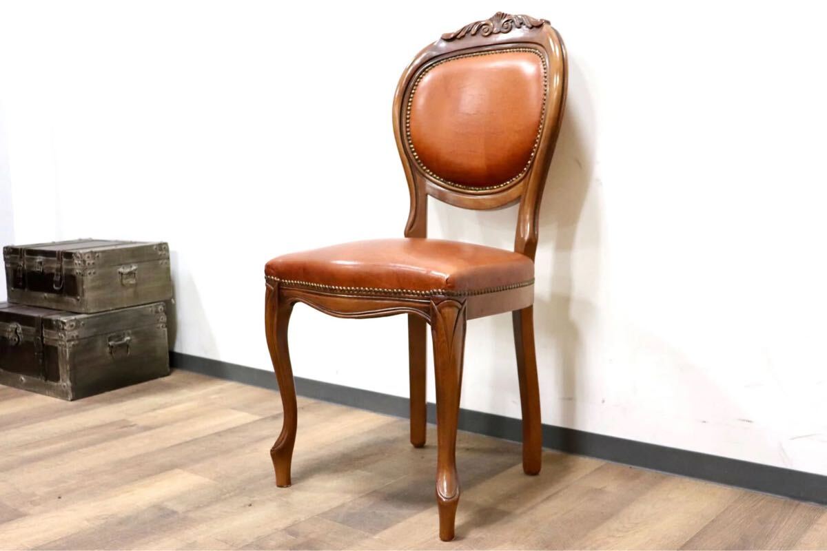 - GMHS96A○イタリア製 ダイニングチェア 椅子 アームレスチェア 革張り クラシック エレガント ロココ調 鋲打ち ヨーロピアン 定価約6万