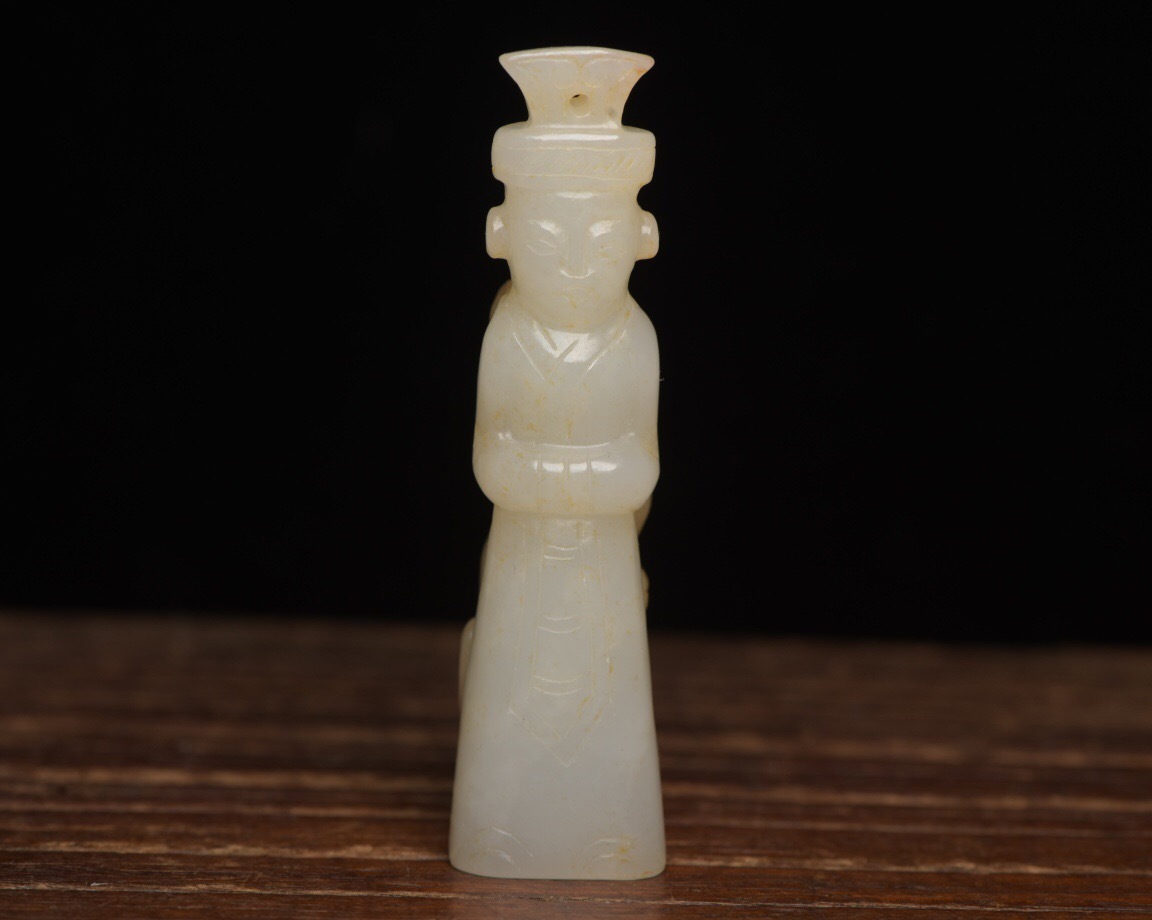 - 【超珍館蔵】和田玉製 細密彫 玉人 置物 賞物 古賞物 古董品 古美術品 時代物 旧家蔵出 稀少珍蔵品