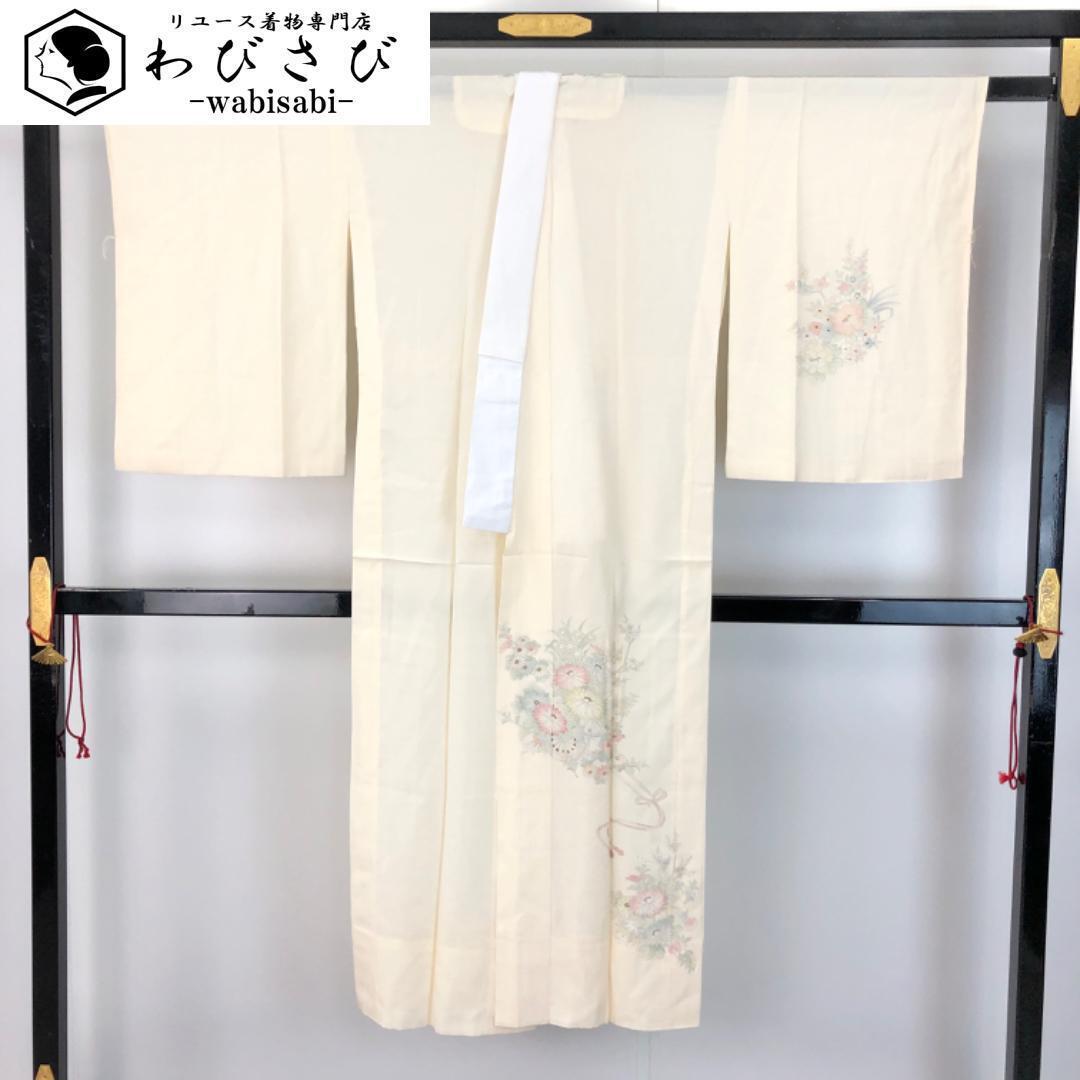 > 長襦袢 単衣 花車 花模様 金彩 薄卵色 J-277 着物 きもの kimono 和服 和装 中古 リサイクル着物 【送料無料】