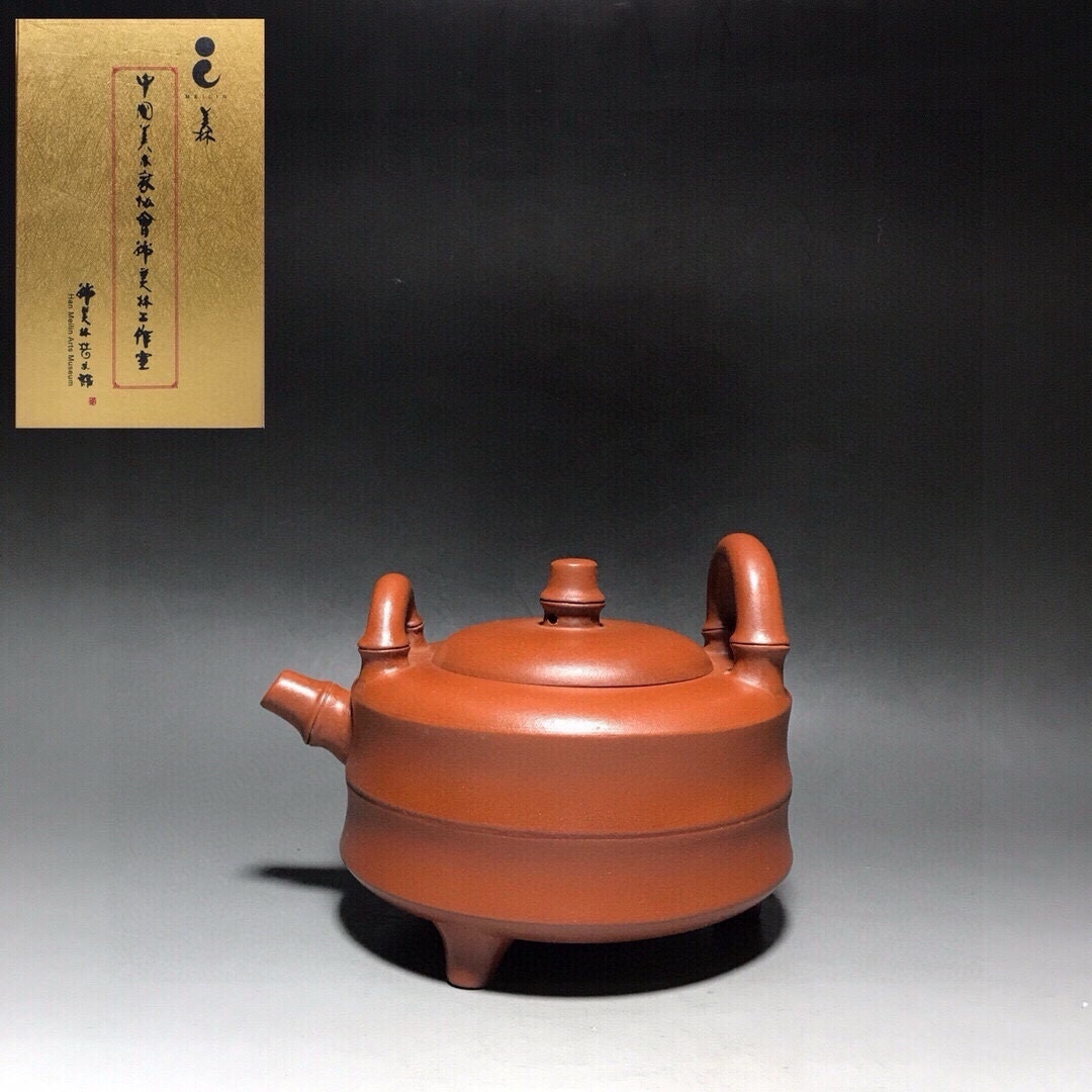> 友人館蔵 古原鉱紫砂製 韓美林款 竹韻壺 茶壺 紫砂壺 急須 茶道具 煎茶道具 古賞物 古美味 東洋彫刻 時代物 骨董 中国古美術