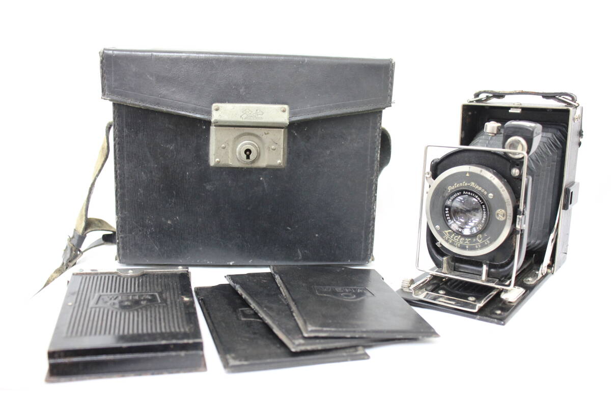 > 【訳あり品】 WEHA Light Heliostar Anastigmat Munchen 105mm F4.5 ケース付き 蛇腹カメラ e1188