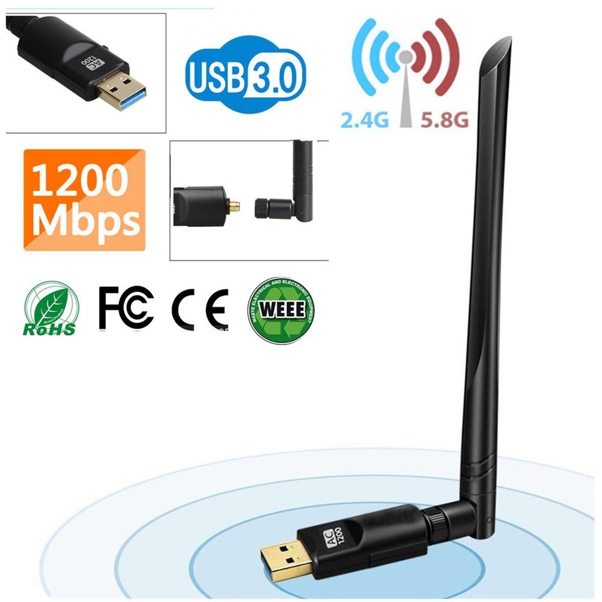 - 高速無線LAN AC1200 WiFiアダプター 子機 USB3.0 外部アンテナ 無線LAN子機 ハイパワー 11ac/n/a/g/b 2.4G 300Mbps + 5.8G 867Mbps ZZ60