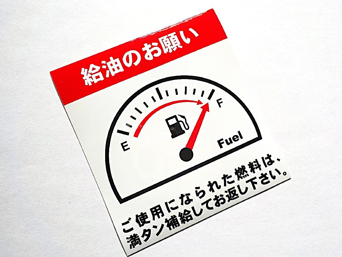 > 2枚 給油のお願いステッカー 最高品質 送料無料 ガソリン満タン 給油 燃料 補給のお願い レンタカー 代車/オマケは青色オイル交換シール