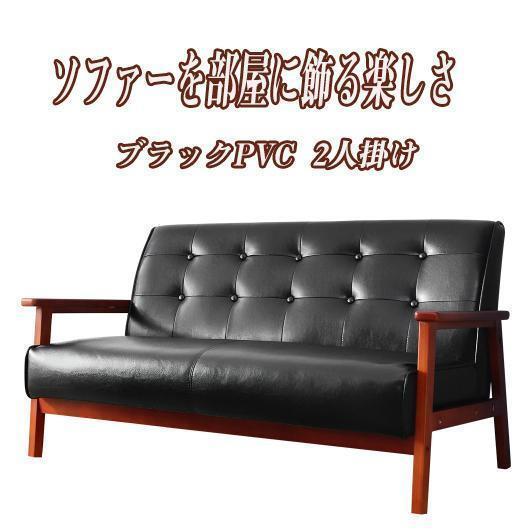 - 送料無料 ソファ ソファー 2人掛け 2Pソファ レザー レトロ モダン 天然木 ブラック