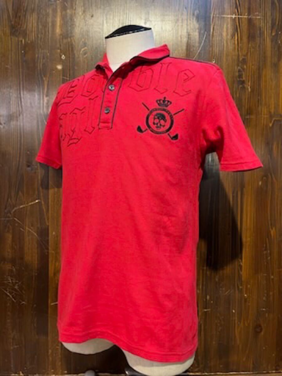 - L562 メンズ ポロ シャツ TK MIXPICE TAKEO KIKUCHI タケオキクチ 半袖 レッド 鹿の子 刺繍 スカル 古着 / M レターパックライト発送