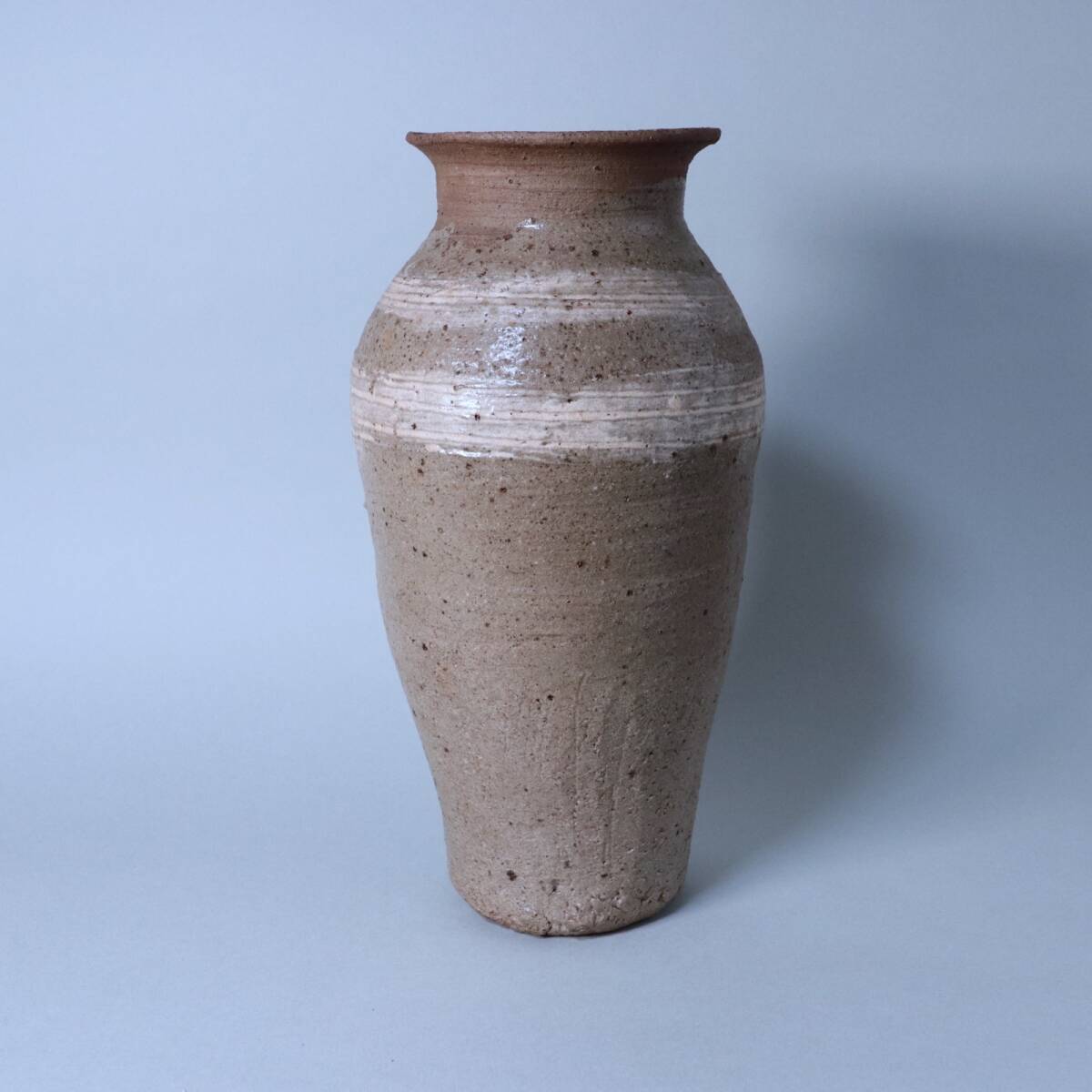 - 三島唐津 刷毛目 二筋壺 高さ33cm 花瓶 花入 作家物 底部印あり F0607C6