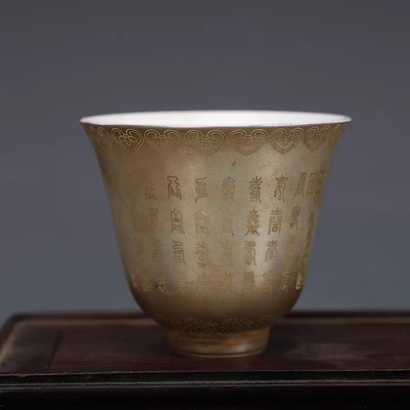 - 清時代 乾隆年製款 古陶磁器 描銀刻字杯 茶杯 磁器 置物 古擺件 時代物 古董品 骨董 旧家蔵出し 唐物 中国古玩 古美術品