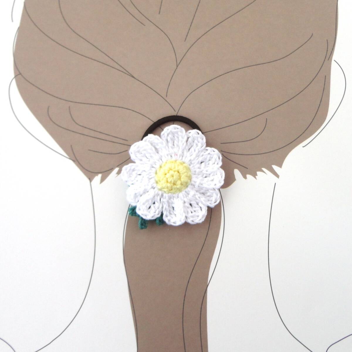 - とってもかわいいマーガレットのヘアゴム*レース編み*ハンドメイド*WH*b829∴再販×12∴