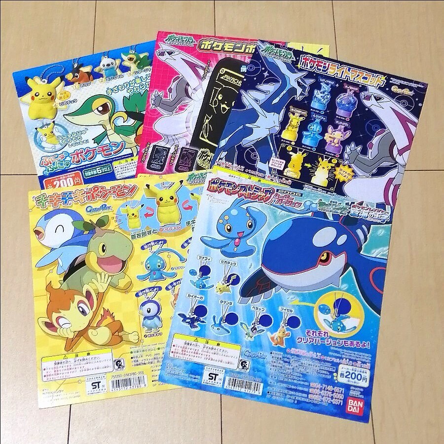 - ポケットモンスター ガシャポン 台紙 5枚セット ポケモン ガチャ バンダイ 当時物 カードダス
