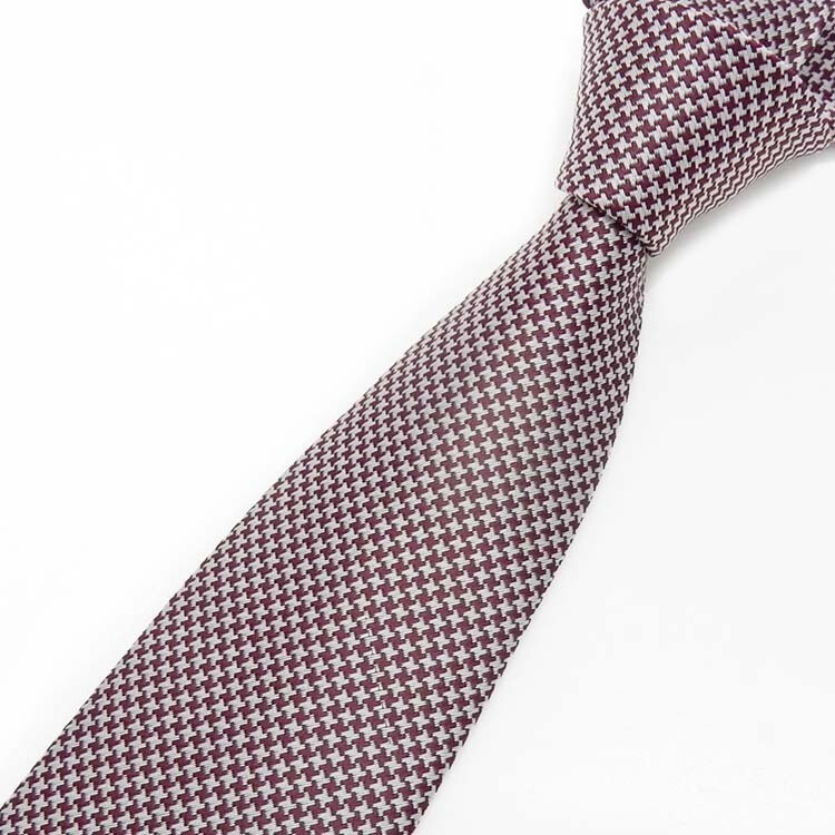 - 日本製 ネクタイ 甲州織 ワイン&銀/千鳥格子 テトロン糸使用 洗濯機OK メール便OK BUN-C04