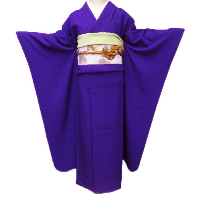 - 振袖 着物 未使用 正絹 紫色 身丈169cm 裄68cm L トール きもの北條 A1205-5
