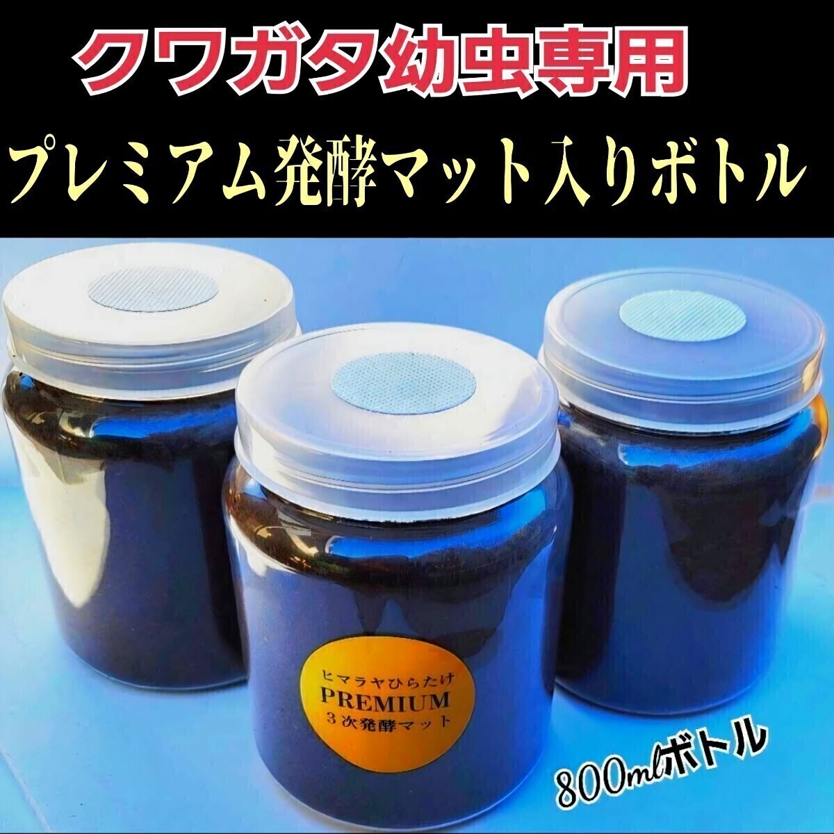 > クワガタの幼虫を入れるだけで便利です!800ml クリアボトル入りプレミアム3次発酵マット 初令からOK!栄養添加剤・バクテリア強化!
