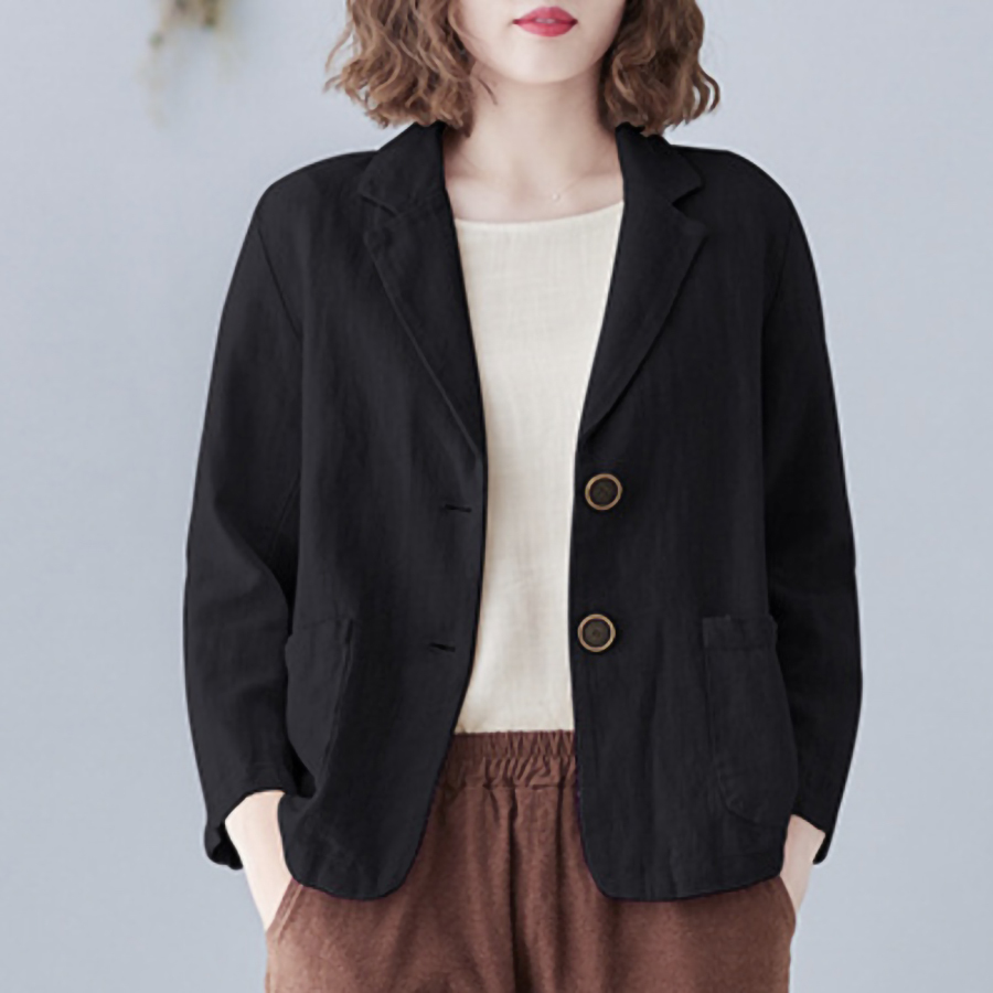 - 新品 黒のボタン付きジャケット カーディガン 綿麻風 リネン 薄地 春夏 free53