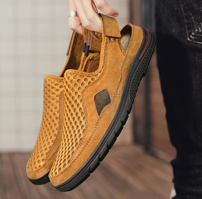 > 新品スリッポン メッシュ サンダル ローファー/メンズ スニーカー 紳士靴 ドライビングシューズ シンプル 黄色 26.0cmお色選択可