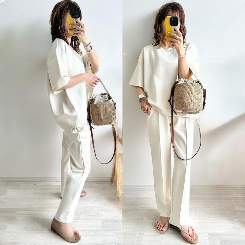 - 新入荷 カジュアル セットアップ レディース 2点セット カジュアル 夏 トップス パンツ ボトムス 大きいサイズ 上下セット