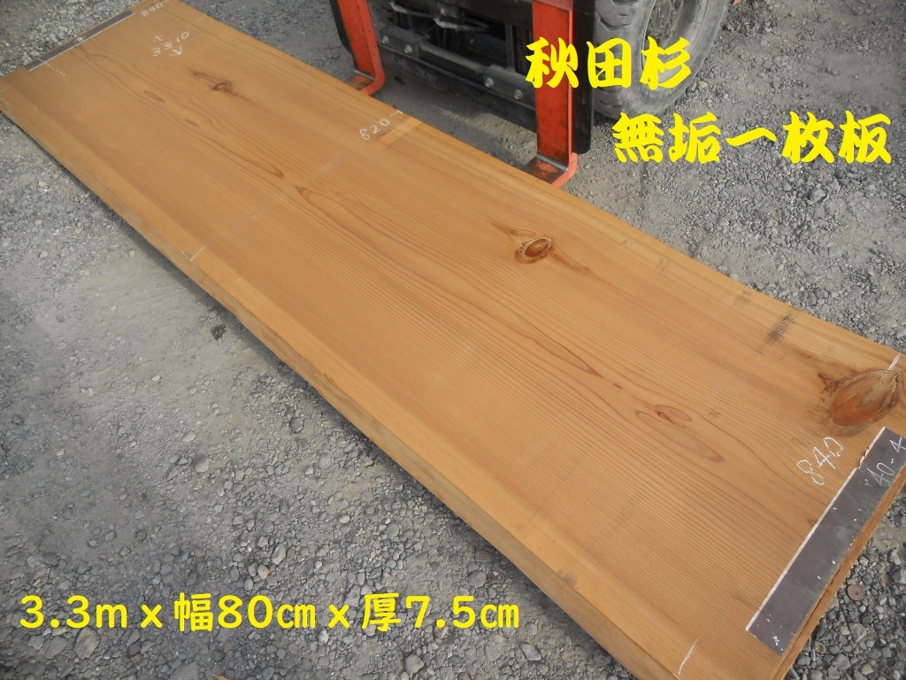 > 秋田杉 長物331cmX86~90cmX7.6cm 乾燥材406 長座卓 ロングテーブル材料 天板各種 看板 天然木 木材 耳付き 無垢一枚板 カウンター素材