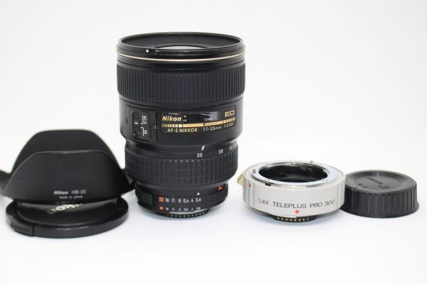 > ■フード/おまけレンズ付き■ニコン Nikon ED AF-S NIKKOR 17-35mm F2.8 D Lens + KENKO N-AFs 1.4X テレプラス プロ 300 #Z5323