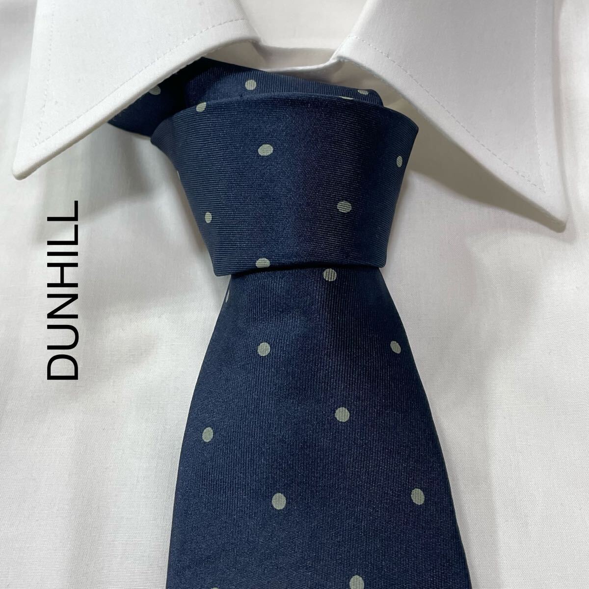 - DUNHILL ダンヒル 水玉 シルク ネクタイ イタリア製 ネイビー TG1874