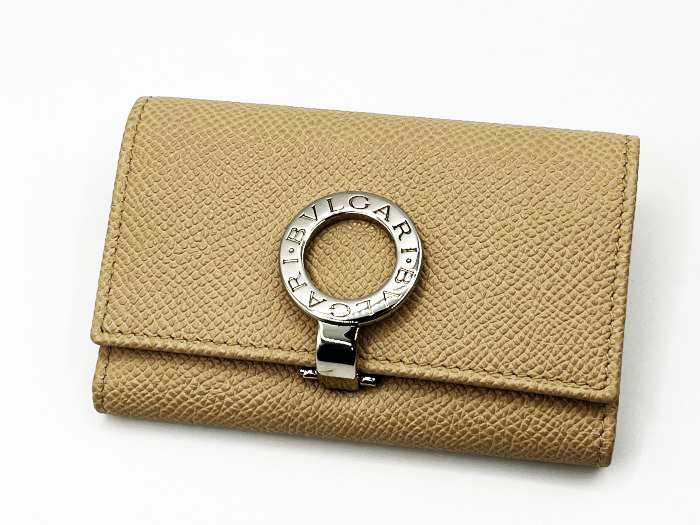 > ブルガリ キーケース 6連 ロゴクリップ ブルガリブルガリ グレインレザー ベージュ 30423 新品同様 メンズ レディース