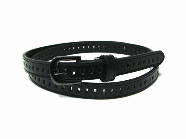 > 牛革使用 エンドレスピンホール スリム レザー ベルト ブラック ピンバックル フリーサイズ 【 新品未使用 】 ◆ アウトレット ◆