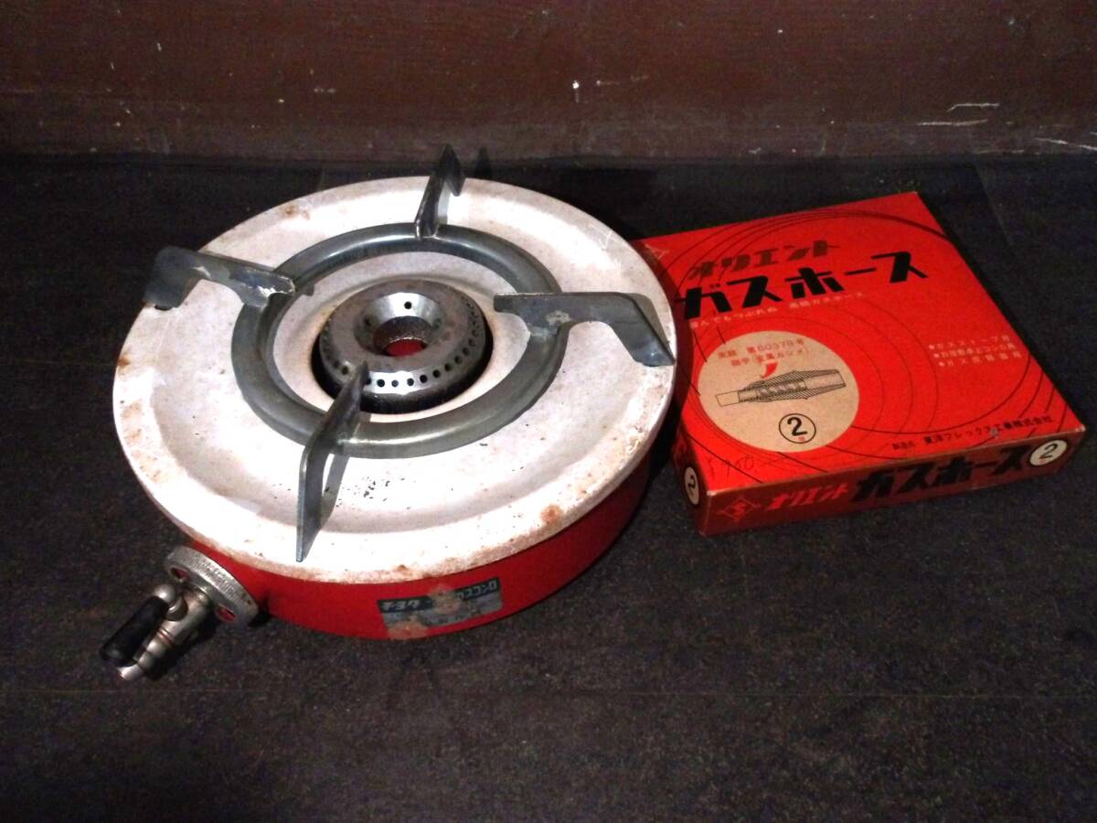 - 【4128】動作未確認 当時物 希少 レトロ チヨダガスコンロ 都市ガス用 松田製作所 ホース付き ガスコンロ 一口 昭和 コンロ 展示にも!!