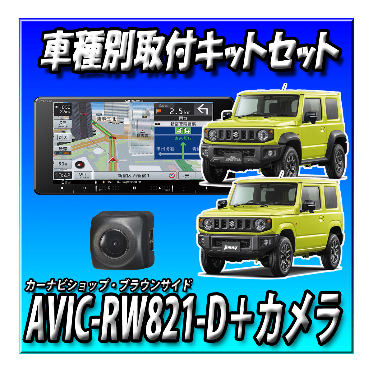 > 【6点セット販売キャンセラー付】AVIC-RW821-D+埋込バックカメラ+ジムニー・シエラ・ノマド用取付キット+HDMIケーブル 200mmワイド